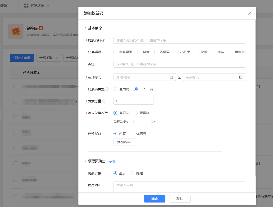 点击【复制】操作,可以复制原兑换码活动,达到快速创建兑换码活动的目的