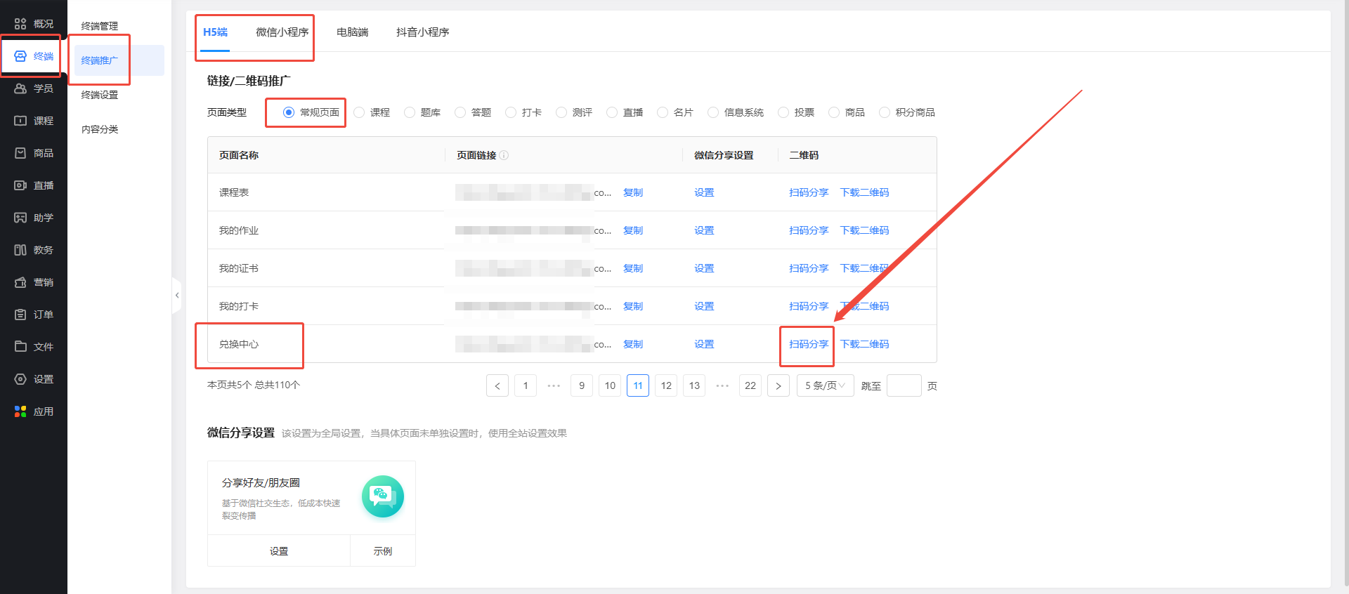 扫码-兑换中心,首先在管理后台-终端推广,获取推广兑换中心页面链接/二维码/小程序码,然后把需要推广的链接放置公众号推文或需要推广的渠道;