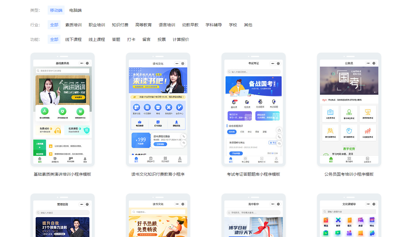 2、点击模板选择合适的小程序模板