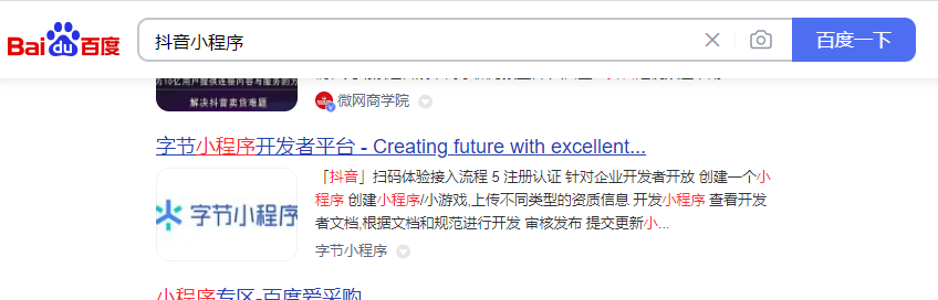 1、我们在搜索引擎中输入抖音小程序(也就字节跳动小程序),选择下方的网址,具体看截图: