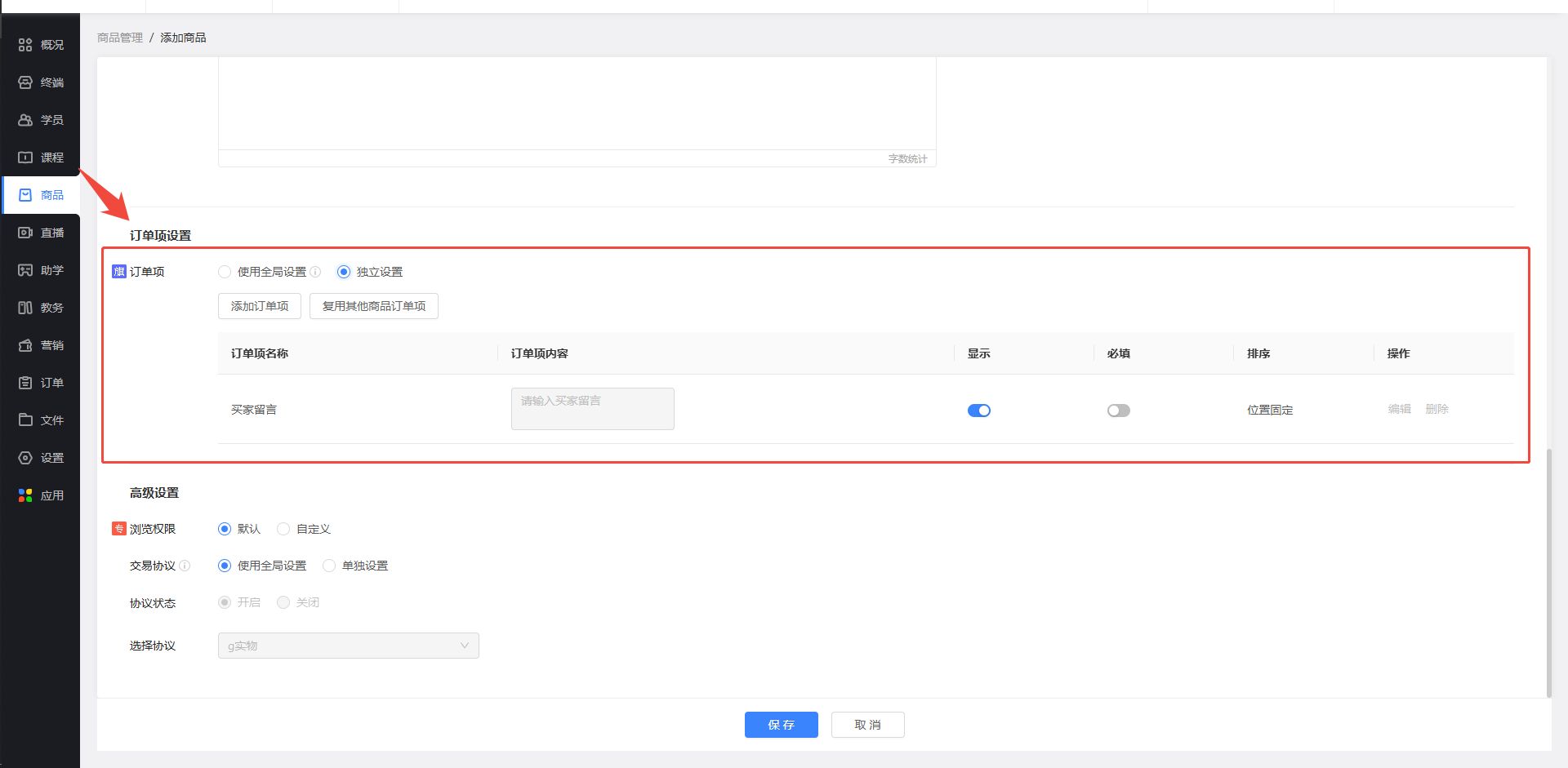 不同线下课、实物商品、课外服务需单独设置收集的订单项信息