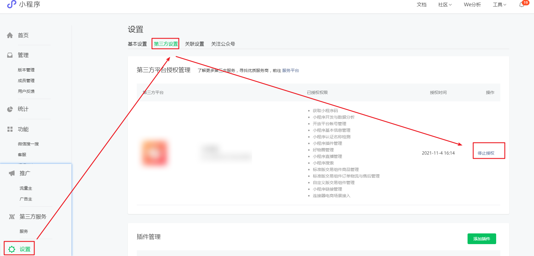 登录后在左侧导航下拉到底部找到【设置】,点击进入【第三方设置】取消所有第三方平台的授权。