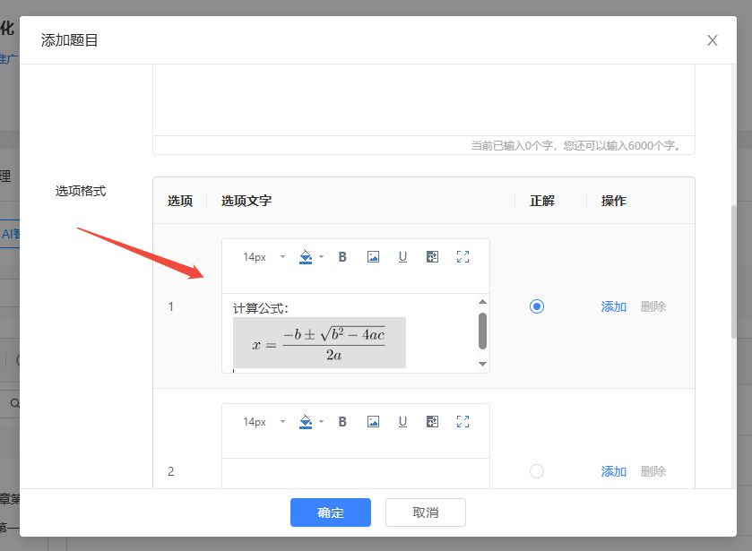 题目选项以前只能单独文字或图片,现在支持录入富文本数据