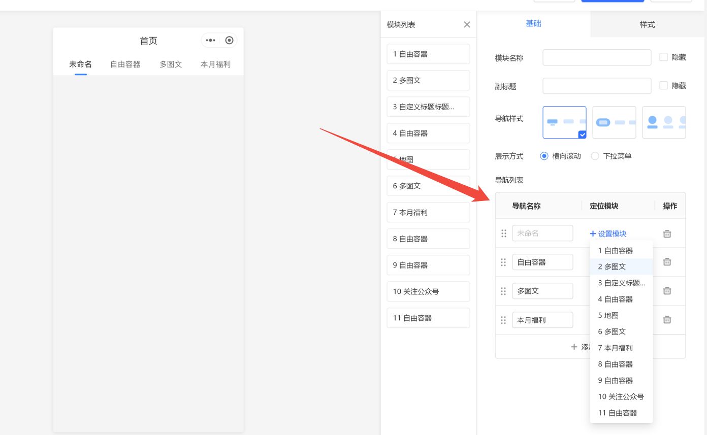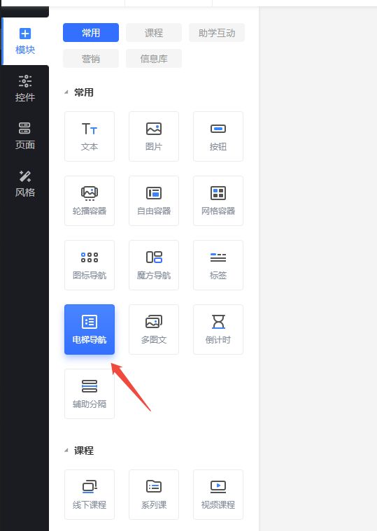 移动端新增“电梯导航”模块,支持设置定位到页面的具体模块位置,点击导航时像电梯一样升降,定位到具体模块。