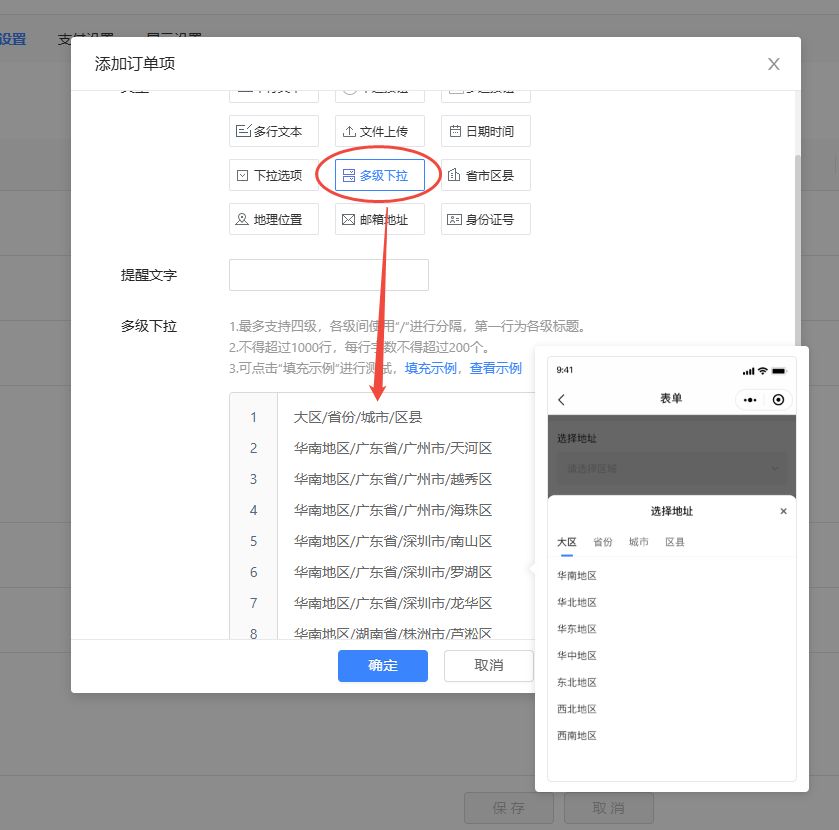 一、表单项、订单项、学员资料项支持多级下拉