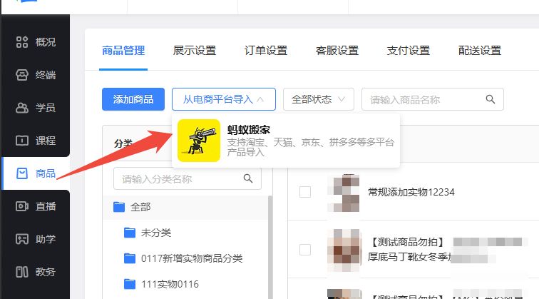 三、【实物商品】支持从各电商平台导入商品(蚂蚁搬家)