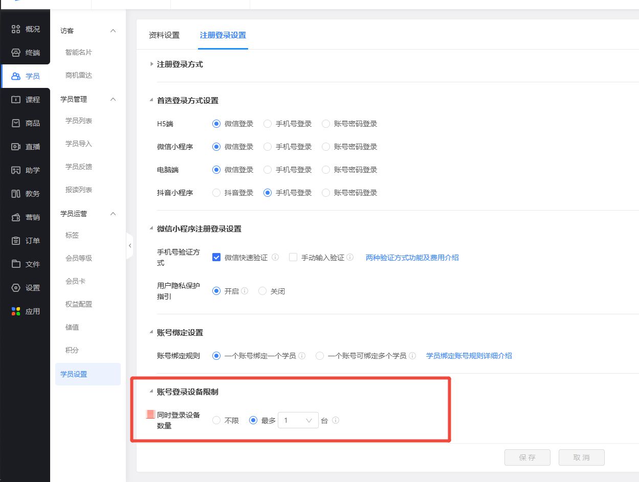 【学员】限制登录设备数量