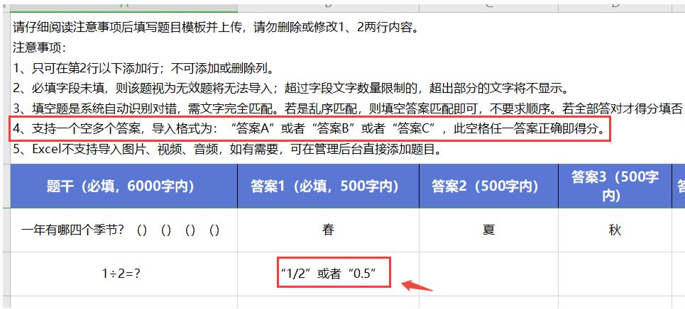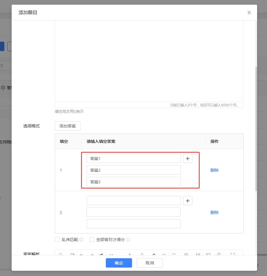 添加/导入题目时,填空题支持设置多个正确答案