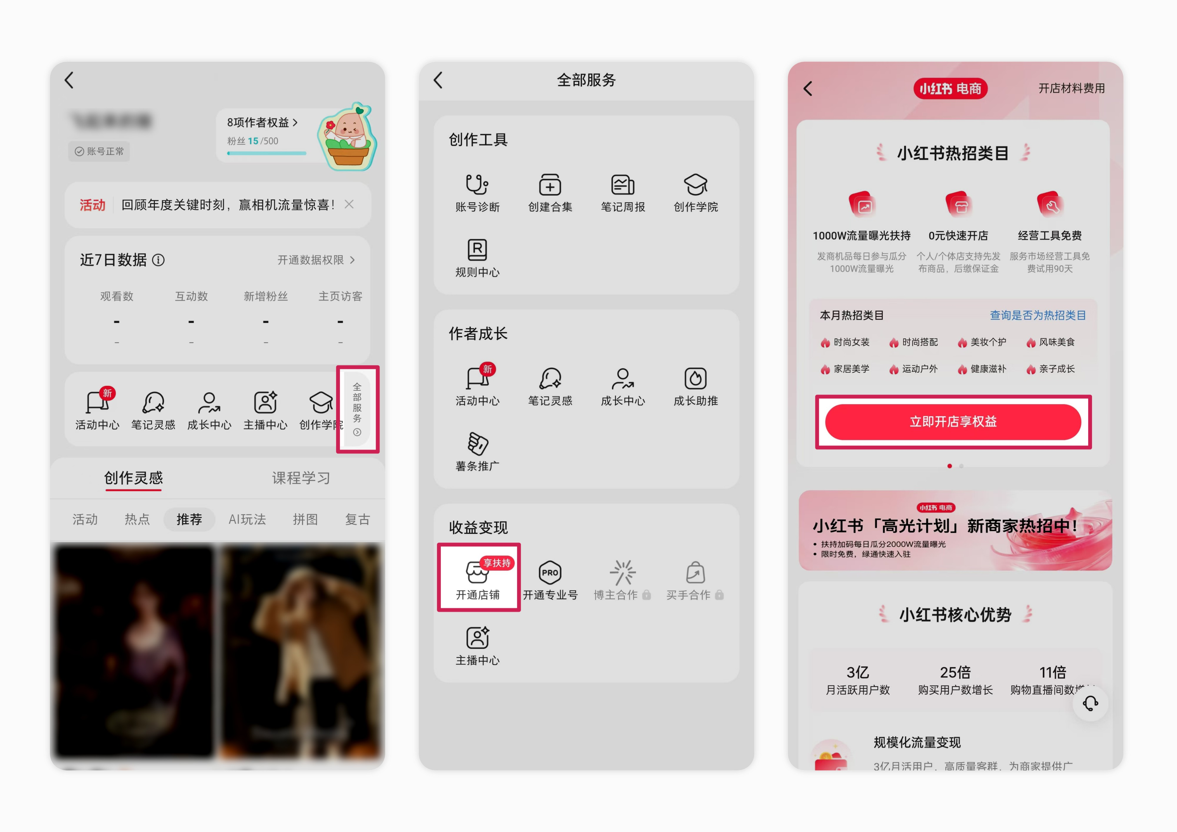一、开通小红书店铺