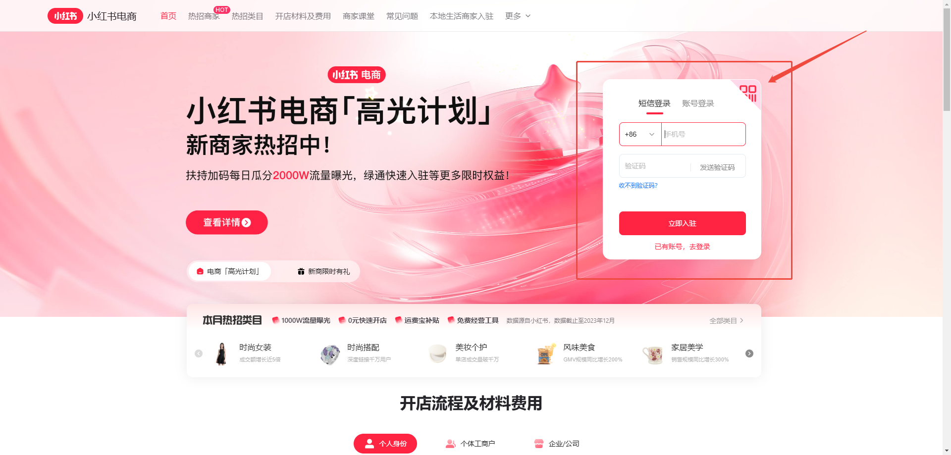 1.打开小红书电商平台注册页:https://ec.xiaohongshu.com/ecommerce/home