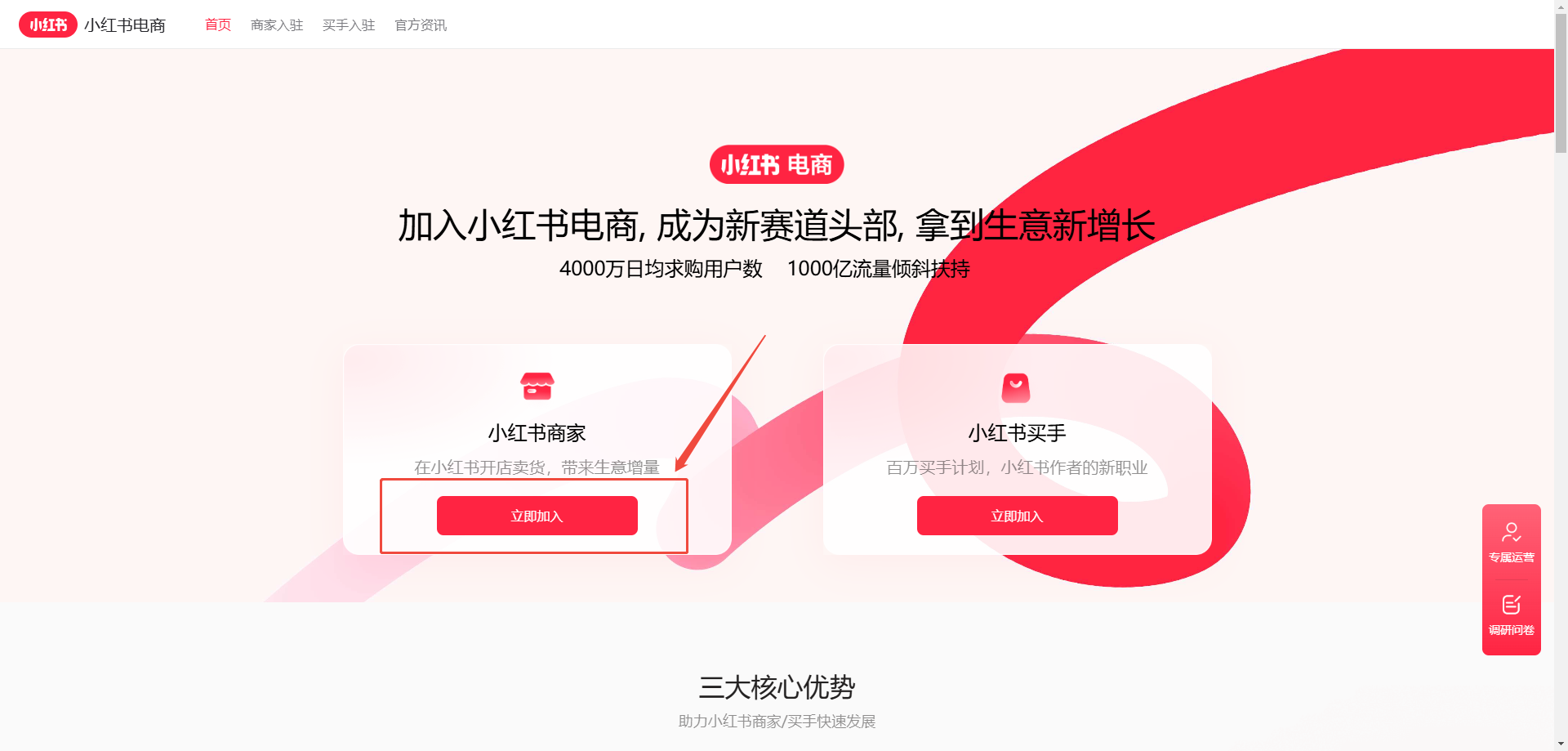 选择【小红书商家】,点击【立即加入】