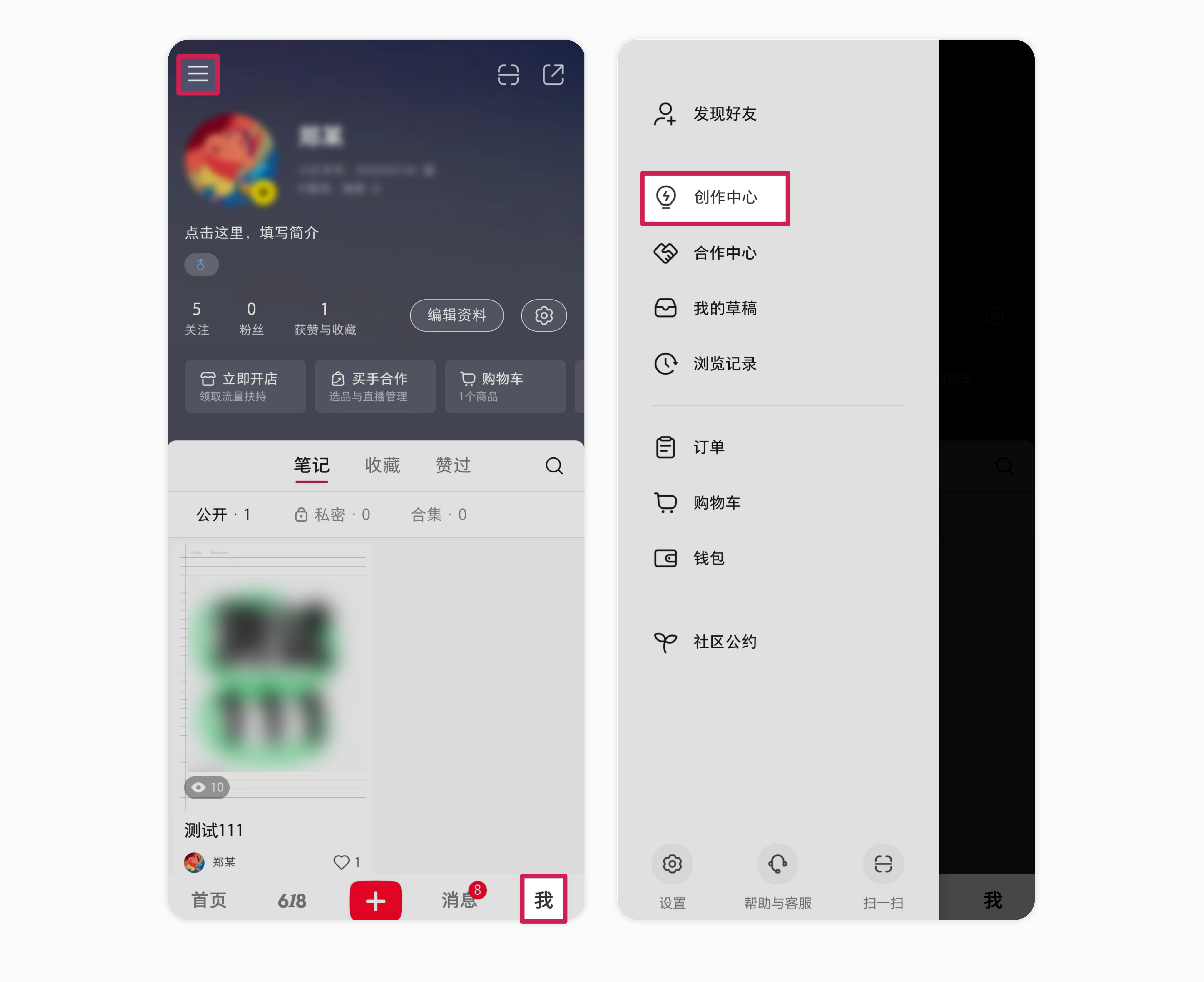 2.点击【我】-【更多】-【创作中心】
