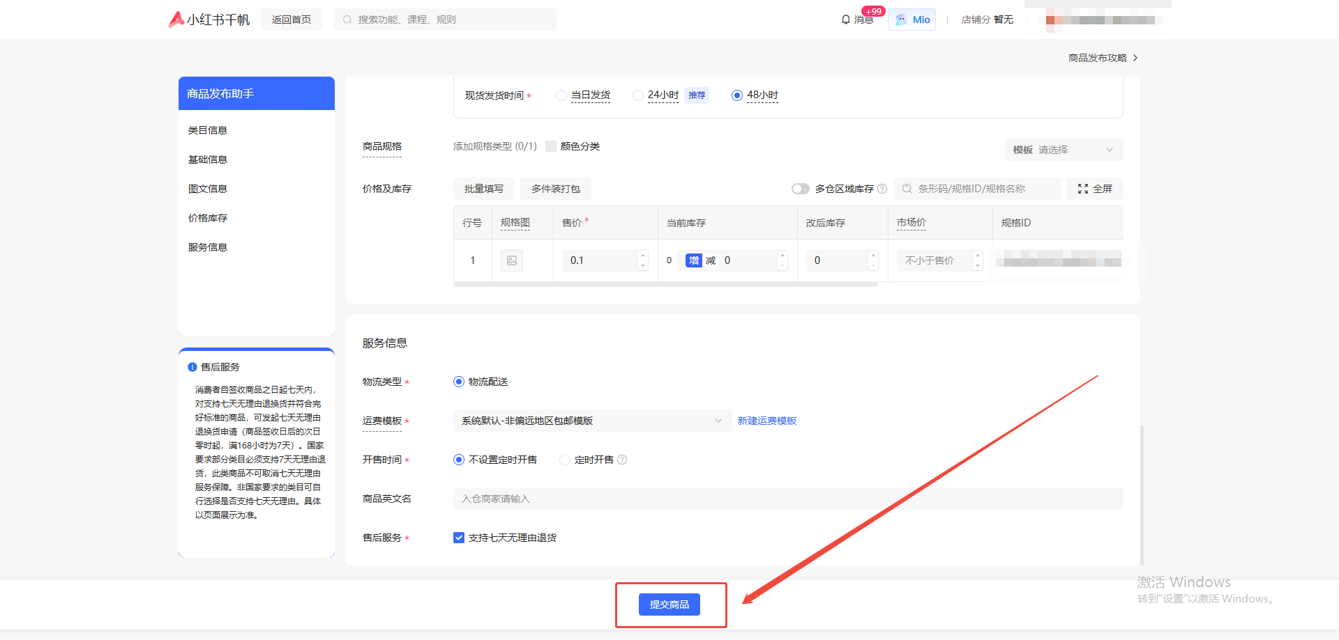 7.填写相关商品描述,点击提交商品。