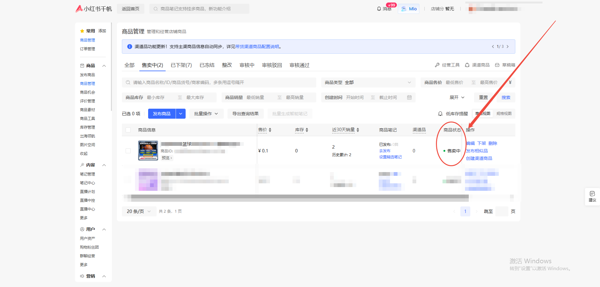 11.检查商品状态是否显示【售卖中】,若为【售卖中】则可以下一步的发货配置