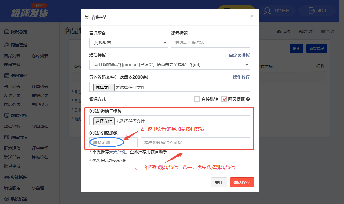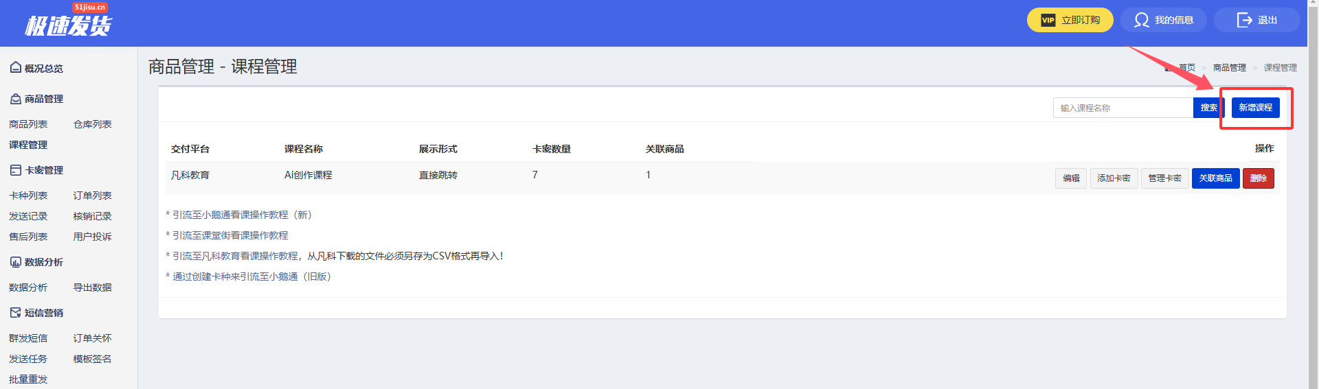 2.1 点击【课程管理】— 点击【新增课程】